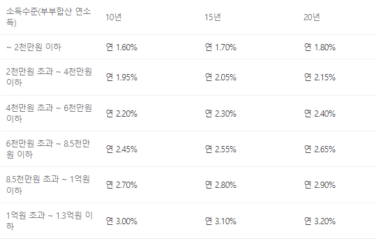 소득 및 자산 : 부부합산 연 소득 1.3억 원 이하, 순자산 4.69억 원(주택 구입자금) 또는 3.45억 원(전세자금) 이하